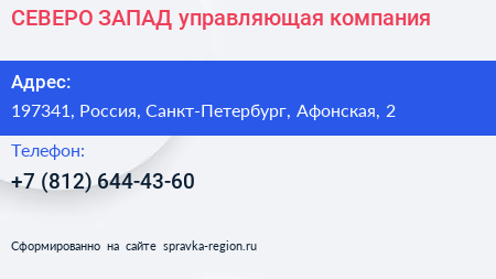 СЕВЕРО-ЗАПАД, управляющая компания по адресу 197341, Россия, Санкт-Петербург, Афонская, 2 в дальнейшем Организация, размещена в следующих категориях: