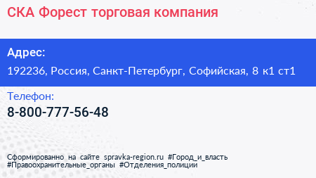 СКА-Форест, торговая компания по адресу 192236, Россия, Санкт-Петербург, Софийская, 8 к1 ст1 в дальнейшем Организация, размещена в следующих категориях: