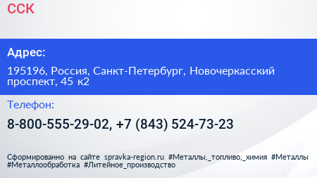 ССК по адресу 195196, Россия, Санкт-Петербург, Новочеркасский проспект, 45 к2 в дальнейшем Организация, размещена в следующих категориях: