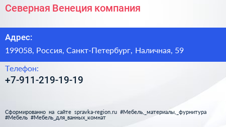 Северная Венеция, компания по адресу 199058, Россия, Санкт-Петербург, Наличная, 59 в дальнейшем Организация, размещена в следующих категориях: