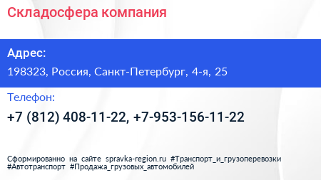 Складосфера, компания по адресу 198323, Россия, Санкт-Петербург, 4-я, 25 в дальнейшем Организация, размещена в следующих категориях: