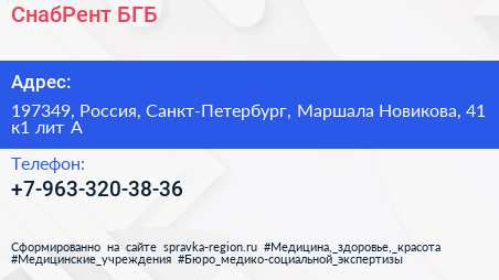 СнабРент-БГБ по адресу 197349, Россия, Санкт-Петербург, Маршала Новикова, 41 к1 лит А в дальнейшем Организация, размещена в следующих категориях: