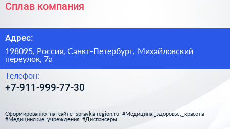 Сплав, компания по адресу 198095, Россия, Санкт-Петербург, Михайловский переулок, 7а в дальнейшем Организация, размещена в следующих категориях: