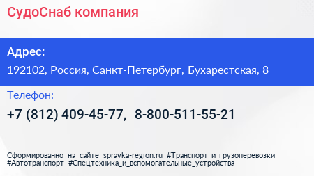 СудоСнаб, компания по адресу 192102, Россия, Санкт-Петербург, Бухарестская, 8 в дальнейшем Организация, размещена в следующих категориях: