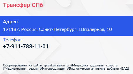 Трансфер-СПб по адресу 191187, Россия, Санкт-Петербург, Шпалерная, 10 в дальнейшем Организация, размещена в следующих категориях: