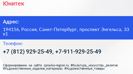 Юнитек по адресу 194156, Россия, Санкт-Петербург, проспект Энгельса, 33 к1 в дальнейшем Организация, размещена в следующих категориях:
