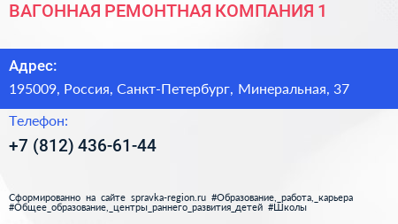 ВАГОННАЯ РЕМОНТНАЯ КОМПАНИЯ-1 по адресу 195009, Россия, Санкт-Петербург, Минеральная, 37 в дальнейшем Организация, размещена в следующих категориях: