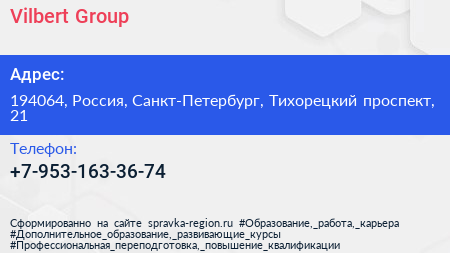 Vilbert Group по адресу 194064, Россия, Санкт-Петербург, Тихорецкий проспект, 21 в дальнейшем Организация, размещена в следующих категориях: