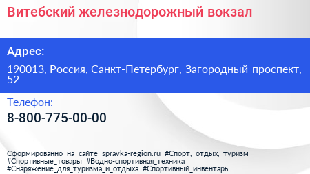 Витебский железнодорожный вокзал по адресу 190013, Россия, Санкт-Петербург, Загородный проспект, 52 в дальнейшем Организация, размещена в следующих категориях: