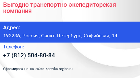 Выгодно, транспортно-экспедиторская компания по адресу 192236, Россия, Санкт-Петербург, Софийская, 14 в дальнейшем Организация, размещена в следующих категориях: