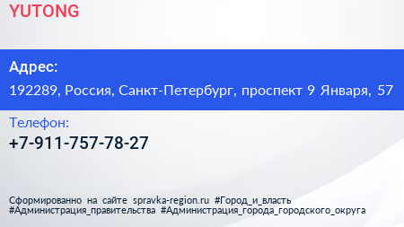 YUTONG по адресу 192289, Россия, Санкт-Петербург, проспект 9 Января, 57 в дальнейшем Организация, размещена в следующих категориях: