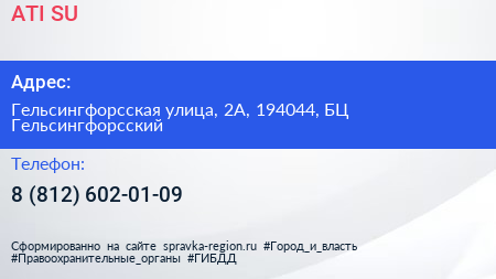 ATI.SU по адресу Гельсингфорсская улица, 2А, 194044, БЦ Гельсингфорсский в дальнейшем Организация, размещена в следующих категориях: