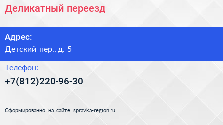 Деликатный переезд по адресу Детский пер., д. 5 в дальнейшем Организация, размещена в следующих категориях: