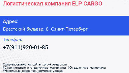 Логистическая компания ELP CARGO по адресу Брестский бульвар, 8, Санкт-Петербург в дальнейшем Организация, размещена в следующих категориях: