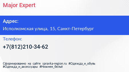 Major Expert по адресу Исполкомская улица, 15, Санкт-Петербург в дальнейшем Организация, размещена в следующих категориях: