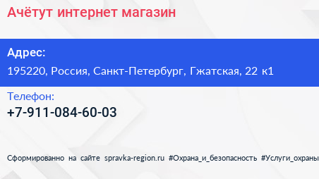 Ачётут, интернет-магазин по адресу 195220, Россия, Санкт-Петербург, Гжатская, 22 к1 в дальнейшем Организация, размещена в следующих категориях: