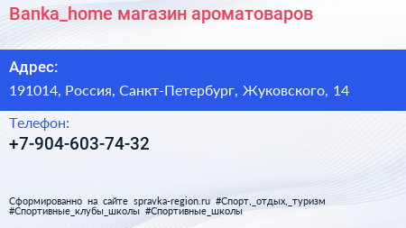 Banka_home, магазин ароматоваров по адресу 191014, Россия, Санкт-Петербург, Жуковского, 14 в дальнейшем Организация, размещена в следующих категориях: