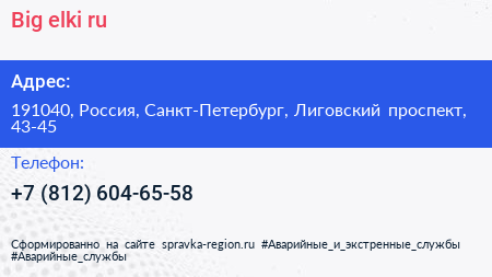 Big-elki.ru по адресу 191040, Россия, Санкт-Петербург, Лиговский проспект, 43-45 в дальнейшем Организация, размещена в следующих категориях: