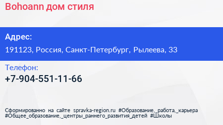 Bohoann, дом стиля по адресу 191123, Россия, Санкт-Петербург, Рылеева, 33 в дальнейшем Организация, размещена в следующих категориях: