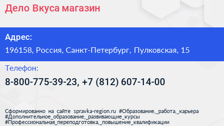 Дело Вкуса, магазин по адресу 196158, Россия, Санкт-Петербург, Пулковская, 15 в дальнейшем Организация, размещена в следующих категориях: