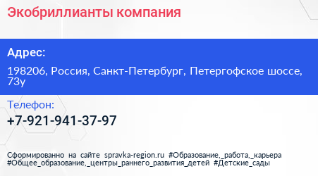 Экобриллианты, компания по адресу 198206, Россия, Санкт-Петербург, Петергофское шоссе, 73у в дальнейшем Организация, размещена в следующих категориях: