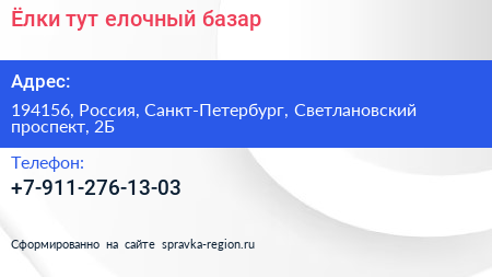 Ёлки тут, елочный базар по адресу 194156, Россия, Санкт-Петербург, Светлановский проспект, 2Б в дальнейшем Организация, размещена в следующих категориях: