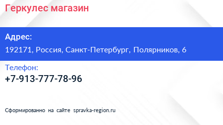 Геркулес, магазин по адресу 192171, Россия, Санкт-Петербург, Полярников, 6 в дальнейшем Организация, размещена в следующих категориях:
