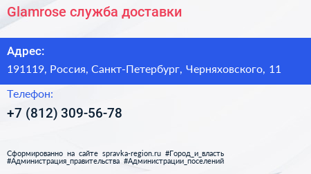 Glamrose, служба доставки по адресу 191119, Россия, Санкт-Петербург, Черняховского, 11 в дальнейшем Организация, размещена в следующих категориях: