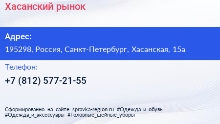 Хасанский, рынок по адресу 195298, Россия, Санкт-Петербург, Хасанская, 15а в дальнейшем Организация, размещена в следующих категориях: