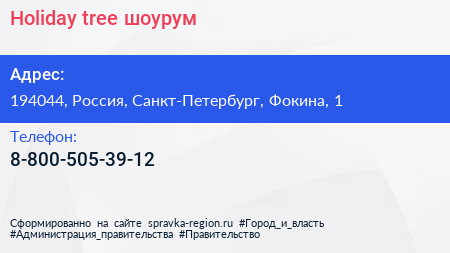 Holiday tree, шоурум по адресу 194044, Россия, Санкт-Петербург, Фокина, 1 в дальнейшем Организация, размещена в следующих категориях: