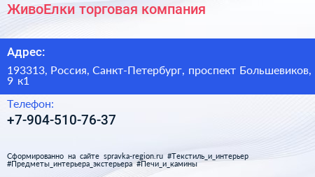ЖивоЕлки, торговая компания по адресу 193313, Россия, Санкт-Петербург, проспект Большевиков, 9 к1 в дальнейшем Организация, размещена в следующих категориях: