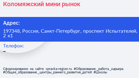 Коломяжский, мини-рынок по адресу 197348, Россия, Санкт-Петербург, проспект Испытателей, 2 к1 в дальнейшем Организация, размещена в следующих категориях: