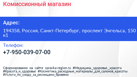 Комиссионный магазин по адресу 194358, Россия, Санкт-Петербург, проспект Энгельса, 150 к1 в дальнейшем Организация, размещена в следующих категориях: