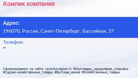 Компик, компания по адресу 196070, Россия, Санкт-Петербург, Бассейная, 37 в дальнейшем Организация, размещена в следующих категориях: