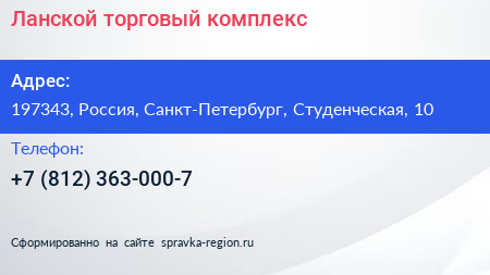 Ланской, торговый комплекс по адресу 197343, Россия, Санкт-Петербург, Студенческая, 10 в дальнейшем Организация, размещена в следующих категориях: