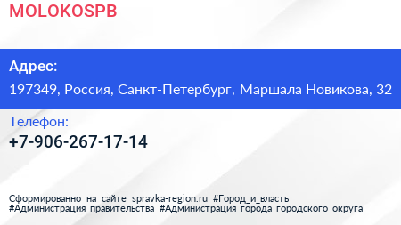 MOLOKOSPB по адресу 197349, Россия, Санкт-Петербург, Маршала Новикова, 32 в дальнейшем Организация, размещена в следующих категориях: