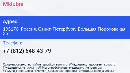 Mklubni по адресу 195176, Россия, Санкт-Петербург, Большая Пороховская, 35 в дальнейшем Организация, размещена в следующих категориях: