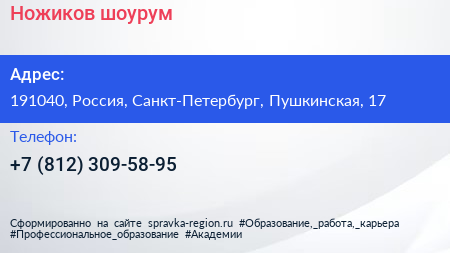 Ножиков, шоурум по адресу 191040, Россия, Санкт-Петербург, Пушкинская, 17 в дальнейшем Организация, размещена в следующих категориях: