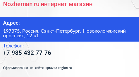 Nozheman.ru, интернет-магазин по адресу 197375, Россия, Санкт-Петербург, Новоколомяжский проспект, 12 к1 в дальнейшем Организация, размещена в следующих категориях: