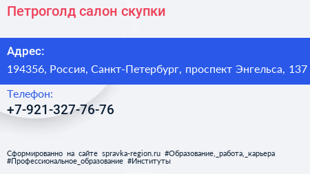 Петроголд, салон скупки по адресу 194356, Россия, Санкт-Петербург, проспект Энгельса, 137 в дальнейшем Организация, размещена в следующих категориях: