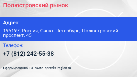 Полюстровский рынок по адресу 195197, Россия, Санкт-Петербург, Полюстровский проспект, 45 в дальнейшем Организация, размещена в следующих категориях: