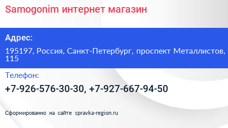Samogonim, интернет-магазин по адресу 195197, Россия, Санкт-Петербург, проспект Металлистов, 115 в дальнейшем Организация, размещена в следующих категориях:
