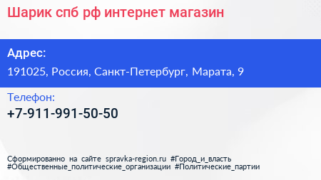 Шарик-спб.рф, интернет-магазин по адресу 191025, Россия, Санкт-Петербург, Марата, 9 в дальнейшем Организация, размещена в следующих категориях: