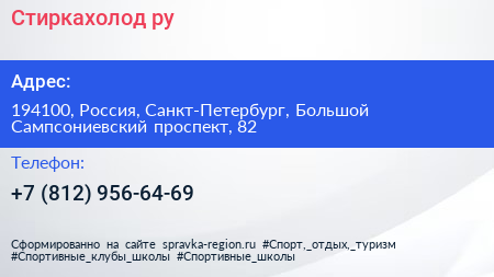 Стиркахолод.ру по адресу 194100, Россия, Санкт-Петербург, Большой Сампсониевский проспект, 82 в дальнейшем Организация, размещена в следующих категориях: