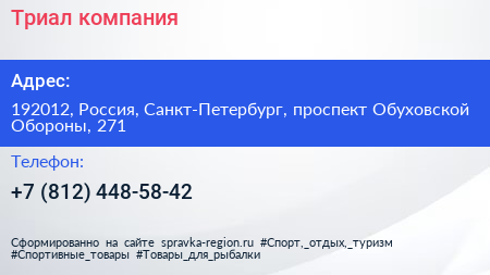 Триал, компания по адресу 192012, Россия, Санкт-Петербург, проспект Обуховской Обороны, 271 в дальнейшем Организация, размещена в следующих категориях: