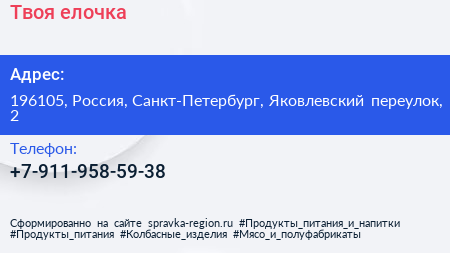 Твоя елочка по адресу 196105, Россия, Санкт-Петербург, Яковлевский переулок, 2 в дальнейшем Организация, размещена в следующих категориях: