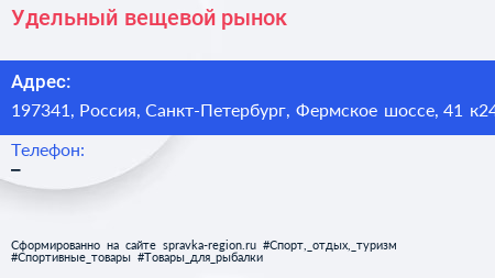 Удельный, вещевой рынок по адресу 197341, Россия, Санкт-Петербург, Фермское шоссе, 41 к24 в дальнейшем Организация, размещена в следующих категориях: