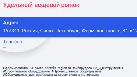 Удельный, вещевой рынок по адресу 197341, Россия, Санкт-Петербург, Фермское шоссе, 41 к12 в дальнейшем Организация, размещена в следующих категориях: