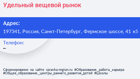 Удельный, вещевой рынок по адресу 197341, Россия, Санкт-Петербург, Фермское шоссе, 41 к5 в дальнейшем Организация, размещена в следующих категориях: