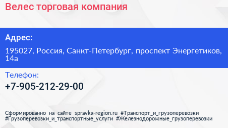 Велес, торговая компания по адресу 195027, Россия, Санкт-Петербург, проспект Энергетиков, 14а в дальнейшем Организация, размещена в следующих категориях: